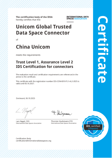 中国联通可信数据空间连接器获得国际数据空间(IDS)认证